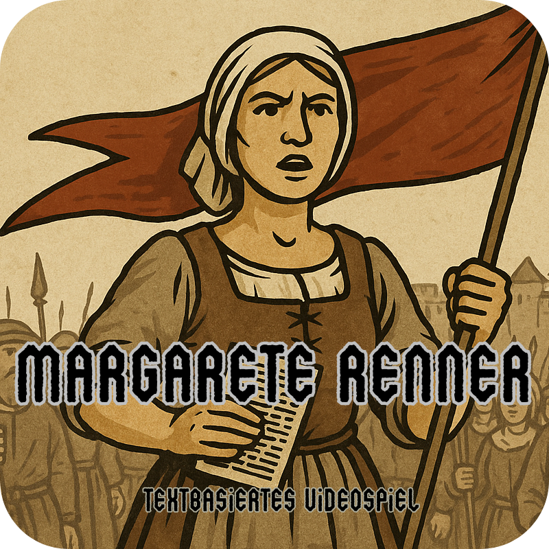 Dieses simple Text-Spiel wurde im Zuge von einer Recherchearbeit zu der Person Magarete Renner entickelt. Diese war eine wichtige Führungsperson im deutschen "Bauernkrieg" von 1525 und darüber hinaus eine der wenigen Frauen die nicht komplett aus den Geschichtsbüchern getilgt wurde.